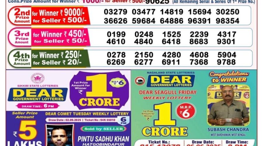 RESULT OF DEAR(12-09-2025 AT 8 PM) M.R.P:-6₹