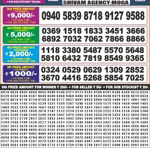 Latest Results September 18, 2025 Daily Result, Lottery Results Less than a minute RESULT OF DEAR(18-09-2025 AT 6 PM) M.R.P:-6₹ Select Date For Result Lottery Results PUNJAB STATE DEAR 100(12-08-2025 AT 6 PM) M.R.P:-100₹ Daily Result, Lottery Results RESULT OF LABHLAXMI (12-08-2025 AT 4PM) M.R.P:-10₹ Daily Result, Lottery Results RESULT OF DEAR 10(12-08-2025 AT 1.30PM) M.R.P:-10₹ Daily Result, Lottery Results RESULT OF DEAR (12-08-2025 AT 1PM) M.R.P:-6₹ Daily Result, Lottery Results RESULT OF DEAR (11-08-2025 AT 8PM) M.R.P:-6₹ Daily Result, Lottery Results RESULT OF DEAR (11-08-2925 AT 7PM(M.R.P:-10₹ Daily Result, Lottery Results RESULT OF PUNJAB STATE DEAR 50(11-08-2025 AT 6PM) Daily Result, Lottery Results RESULT OF DEAR (11-08-2025 AT 6PM)M.R.P:-6₹ Daily Result, Lottery Results RESULT OF LABHLAXMI (11-08-2025 AT 4PM) M.R.P:-10₹ 1 ...23 24 25 26 27 ... 221