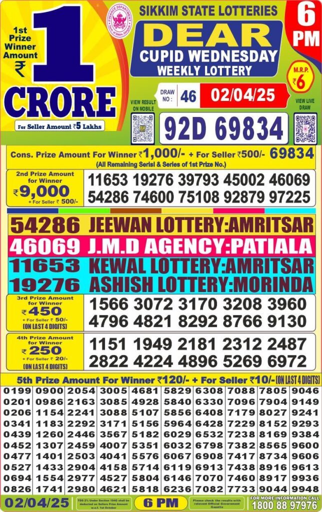 RESULT OF DEAR (02-04-2025 AT 6PM) M.R.P:-6₹