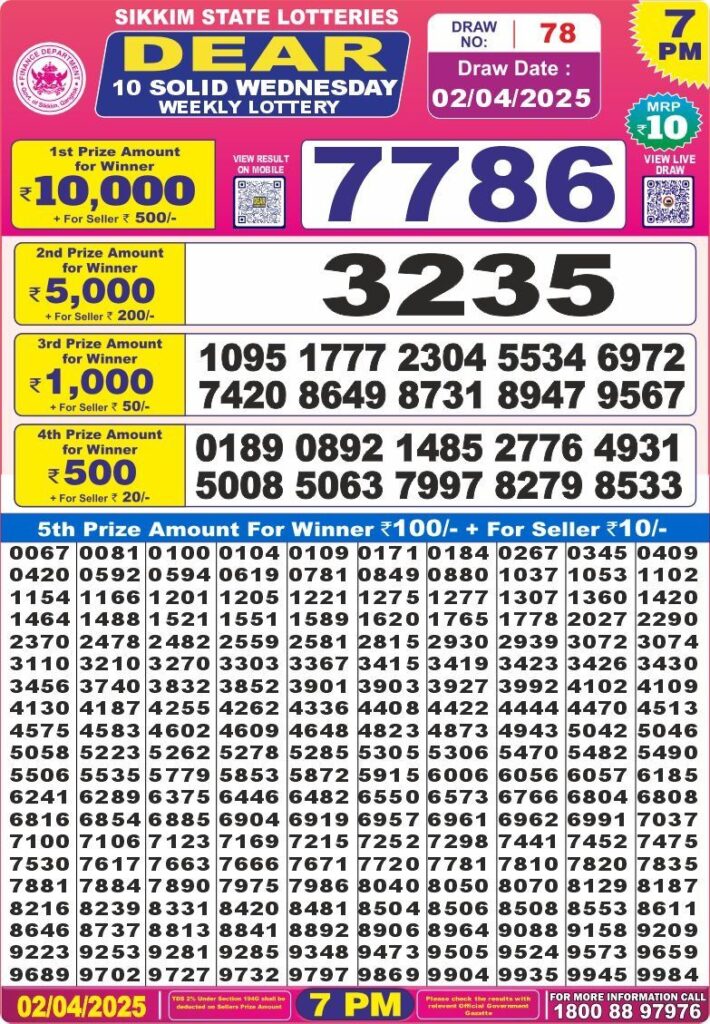 RESULT OF DEAR (02-04-2025 AT 7 PM) M.R.P:-10₹