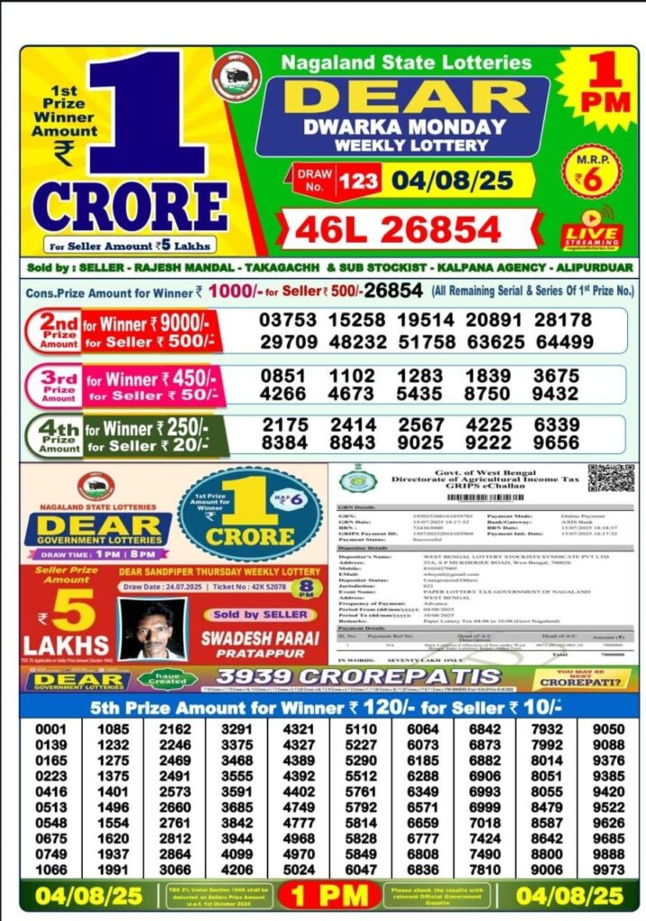 RESULT OF DEAR (04-08-2025 AT 1PM) M.R.P:-6