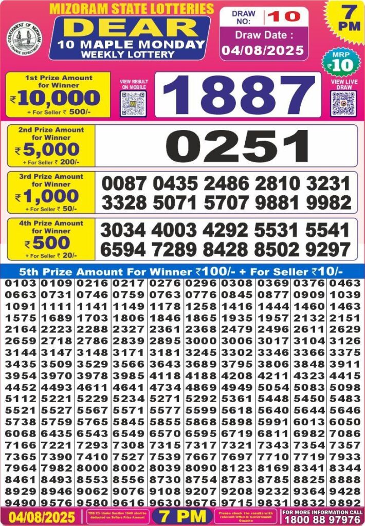 RESULT OF DEAR (04-08-2925 AT 7PM(M.R.P:-10