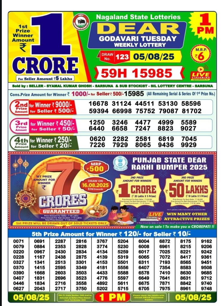RESULT OF DEAR (04-08-2025 AT 8PM) M.R.P:-6₹