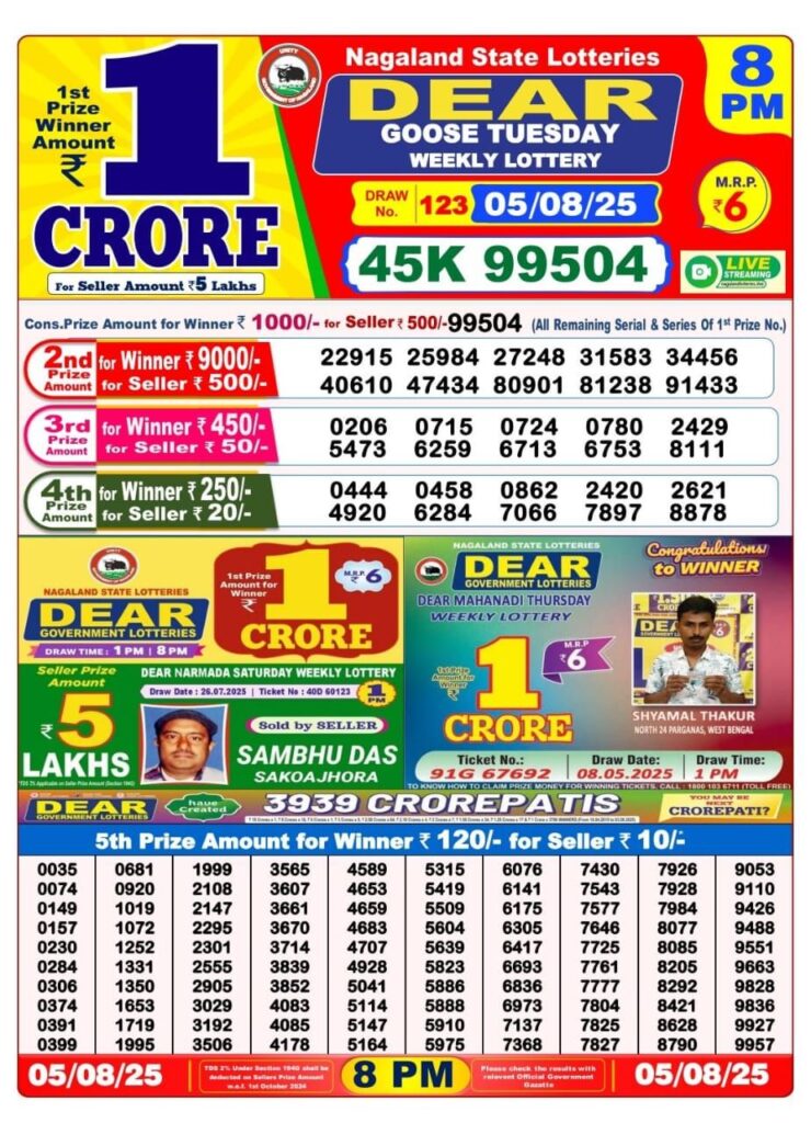 RESULT OF DEAR (05-08-2025 AT 8PM) M.R.P:-6₹