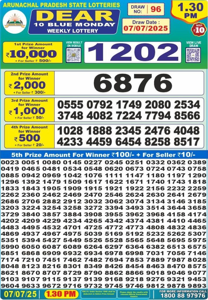 RESULT OF DEAR (07-07-2025 AT 1.30PM) M.R.P:-10₹