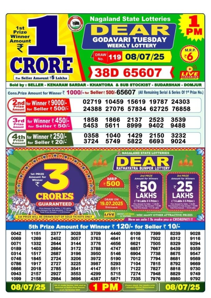 RESULT OF DEAR (08-07-2025 AT 1PM) M.R.P:-6₹