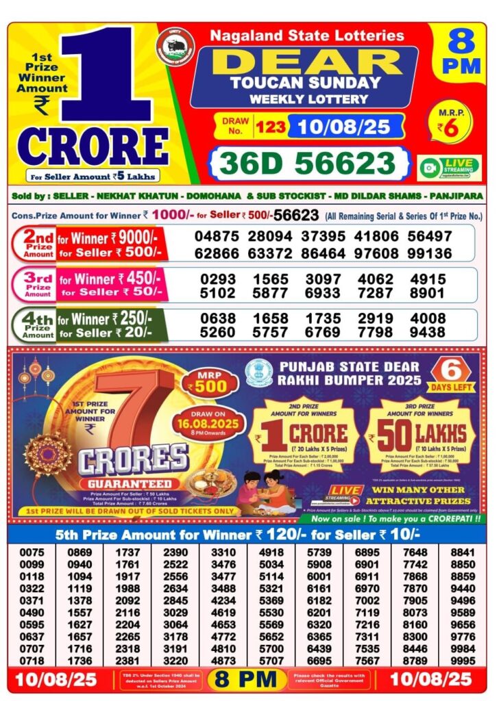 RESULT OF DEAR (10-08-2025 AT 8PM) M.R.P:-6₹