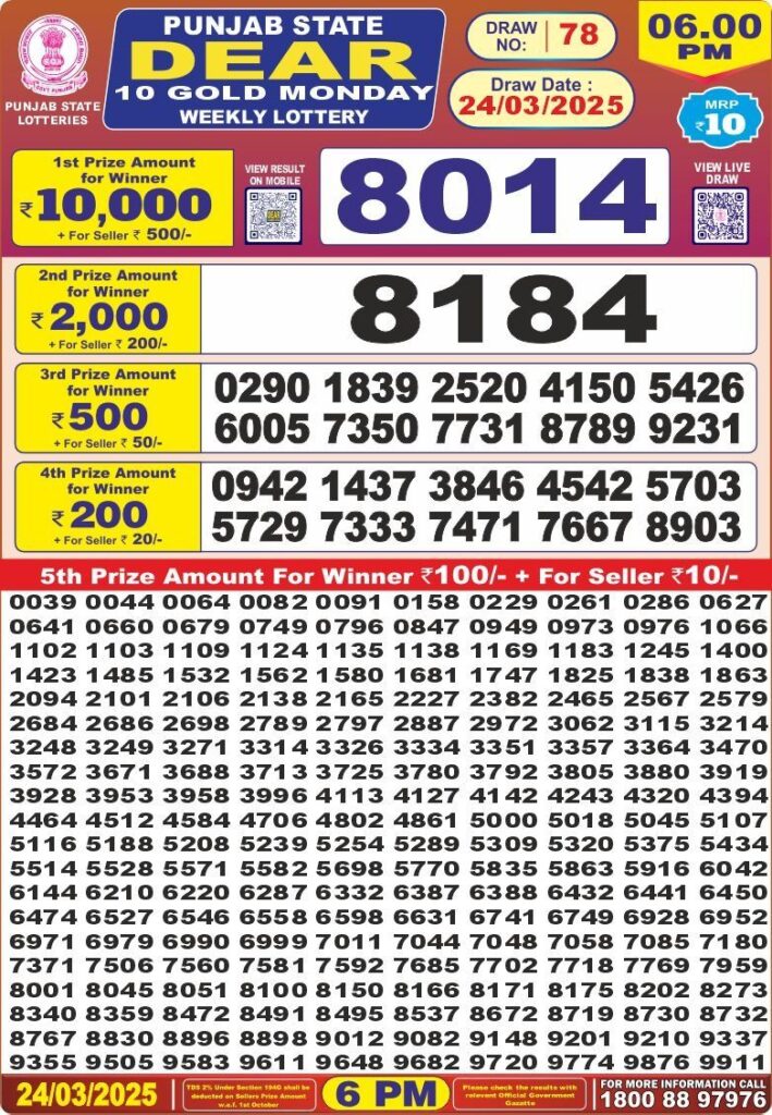 RESULT OF PB DEAR 10(24-03-2025 AT 6 PM) M.R.P:-10₹