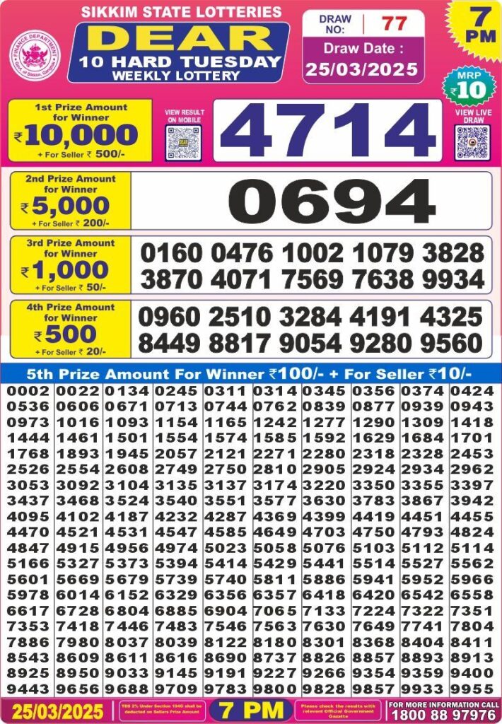 RESULT OF DEAR 10(25-03-2025 AT 7 PM) M.R.P:-10₹