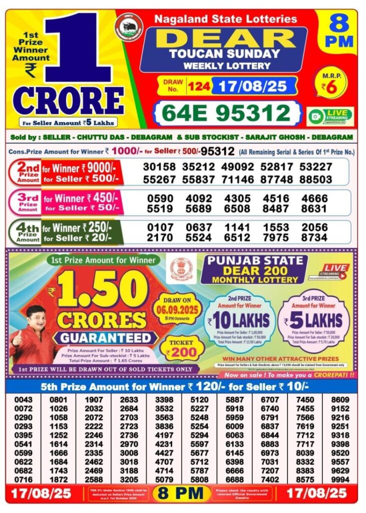 RESULT OF DEAR NAGALAND STATE (18-08-2025 AT 1 PM) M.R.P:-6₹