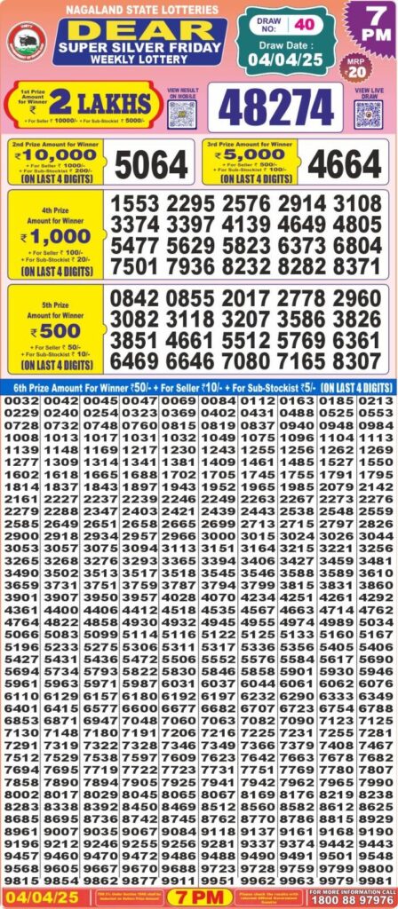 RESULT OF DEAR (04-04-2025 AT 8 PM) M.R.P:-6₹