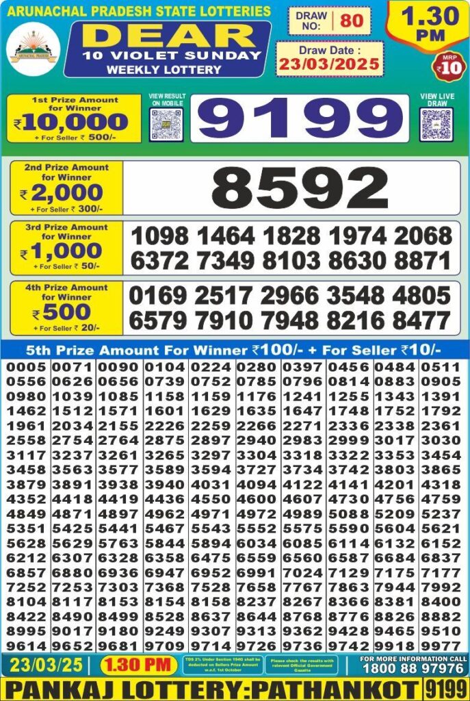 RESULT OF DEAR NAGALND STATE (23-03-2025 AT 1:30 PM) M.R.P:-10₹
