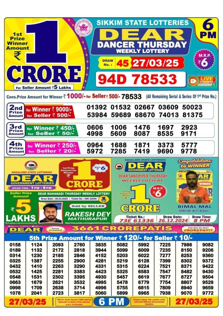 RESULT OF DEAR (27-03-2025 AT 6 PM) M.R.P:-6₹