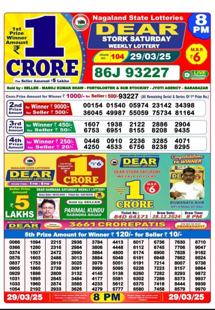 RESULT OF DEAR (29-03-2025 AT 8 PM) M.R.P:-6₹