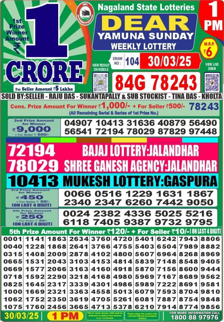 RESULT OF DEAR NAGALAND STATE 1:30 PM) M.R.P:-10₹