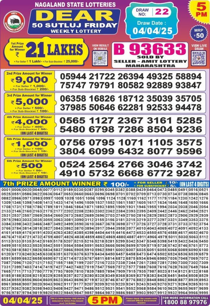 RESULT OF DEAR 50(04-04-2025 AT 5 PM) M.R.P:-50₹