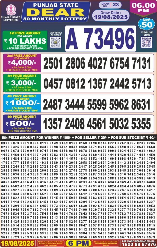 RESULT OF DEAR 50(19-08-2025 AT 6 PM) M.R.P:-50₹