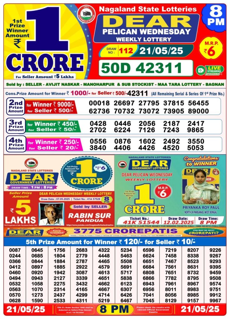 RESULT OF DEAR SUPER 20(21-05-2025 AT 7PM) M.R.P:-20₹