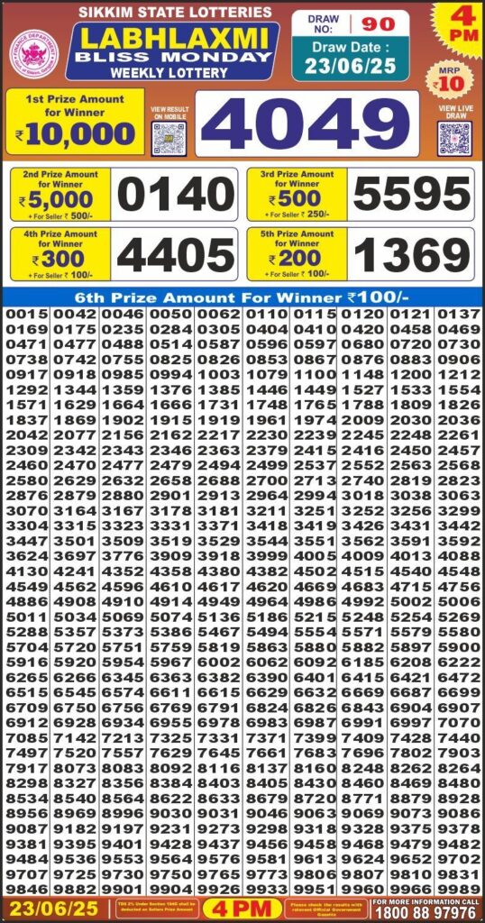 RESULT OF DEAR LABHLAXMI (23-06-2025 AT 4PM) M.R.P:-10₹