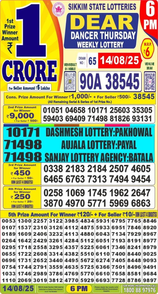 RESULT OF DEAR 50(14-08-2025 AT 6 PM) M.R.P:-50₹