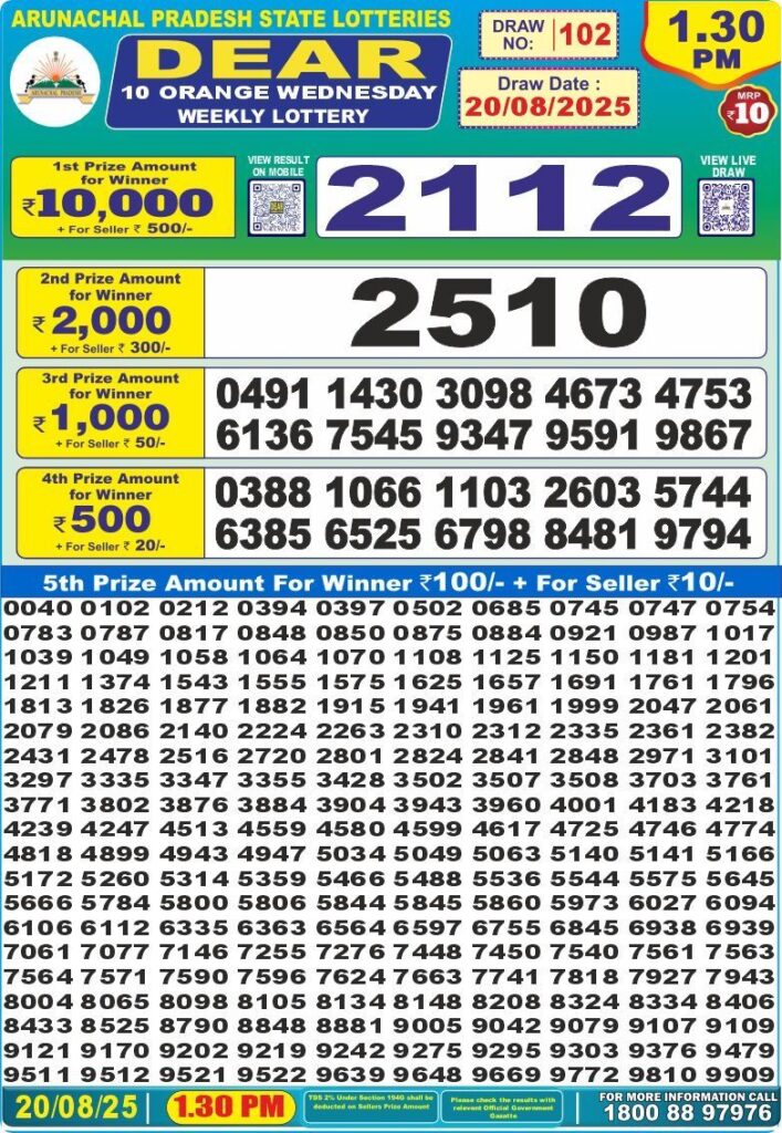RESULT OF DEAR NAGALAND STATE (20-08-2025 AT 1:3O PM) M.R.P:-10₹