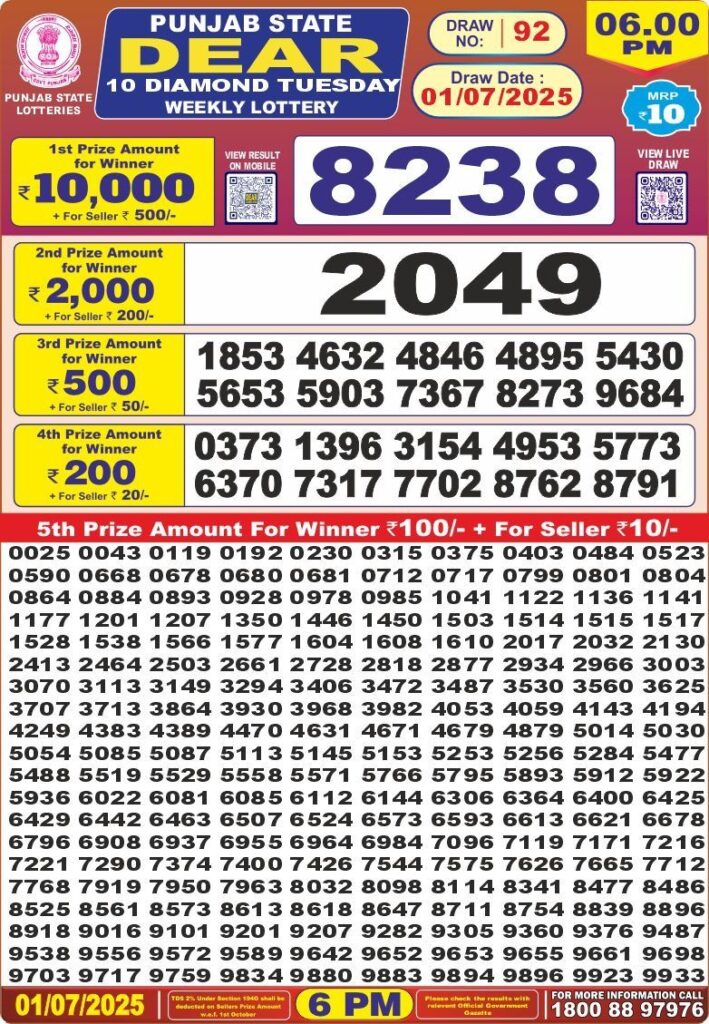 RESULT OF DEAR PB.10(01-07-2025 AT 6PM) M.R.P:-10₹
