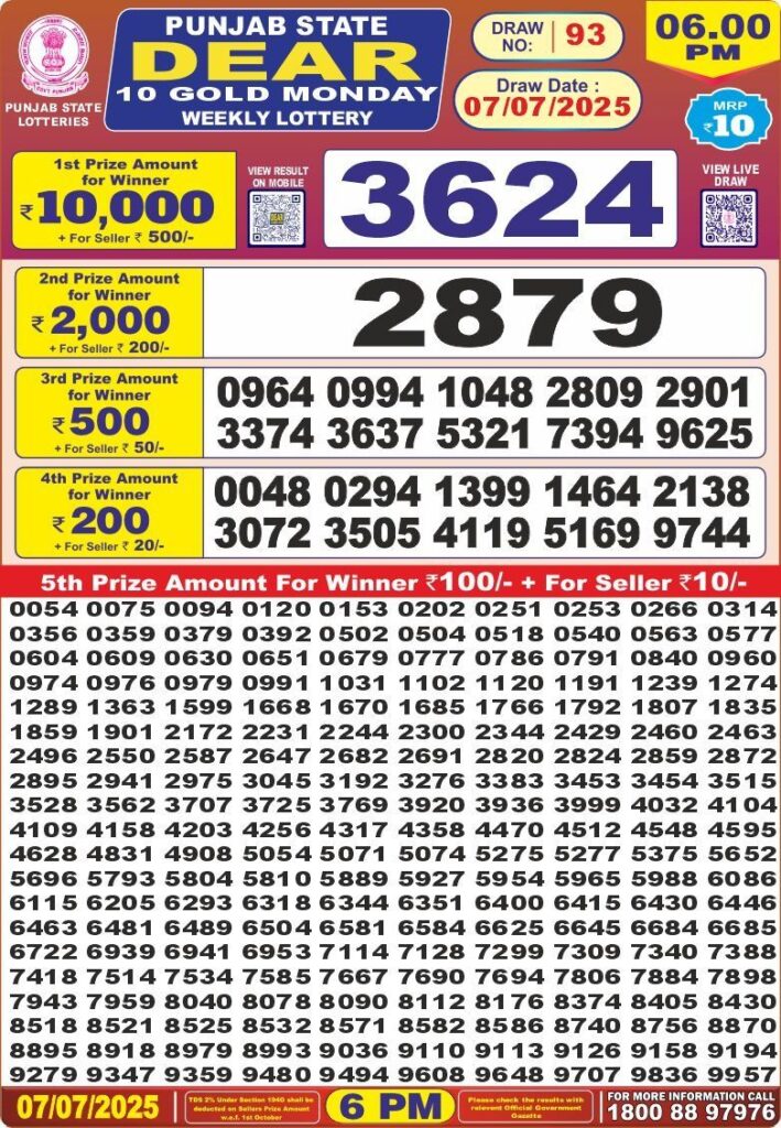 RESULT OF DEAR PB.10(07-07-2025 AT 6PM) M.R.P:-10₹