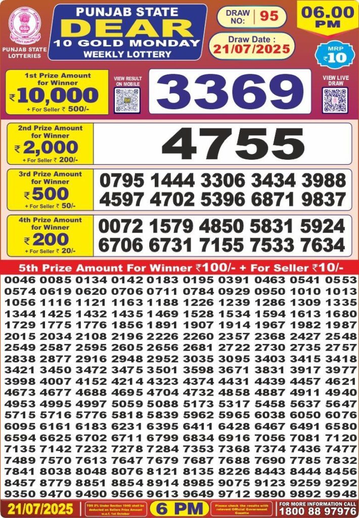 RESULT OF DEAR PB.10(21-07-2025 AT 6PM) M.R.P:-10₹