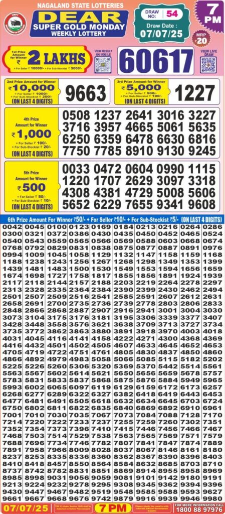 RESULT OF DEAR SUPER (07-07-2025 AT 7PM) M.R.P:-20₹