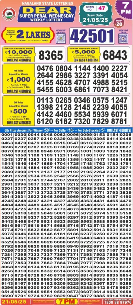 RESULT OF DEAR SUPER 20(21-05-2025 AT 7PM) M.R.P:-20₹