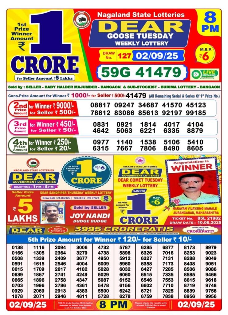 RESULT OF DEAR(02-09-2025 AT 8 PM) M.R.P:-6₹