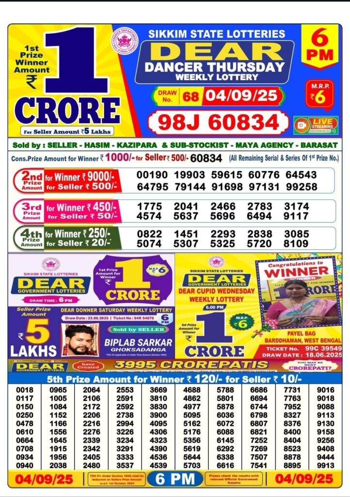 RESULT OF DEAR(04-09-2025 AT 6 P.M) M.R.P:-6₹