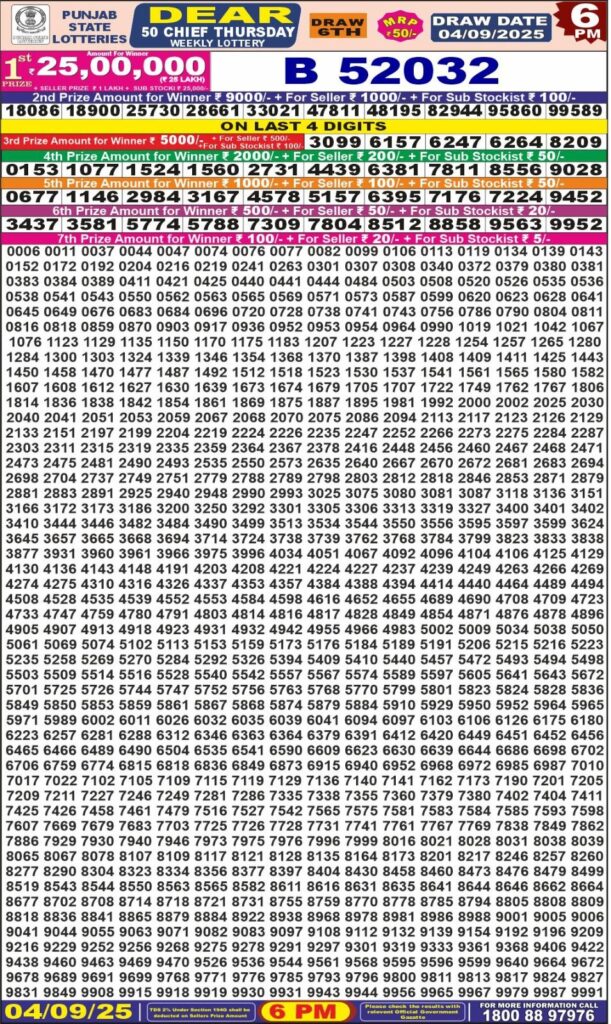 RESULT OF DEAR(04-09-2025 AT 6 P.M) M.R.P:-6₹