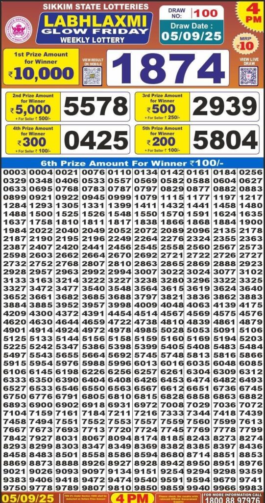 RESULT OF DEAR(05-09-2025 AT 4 PM) M.R.P:-10₹