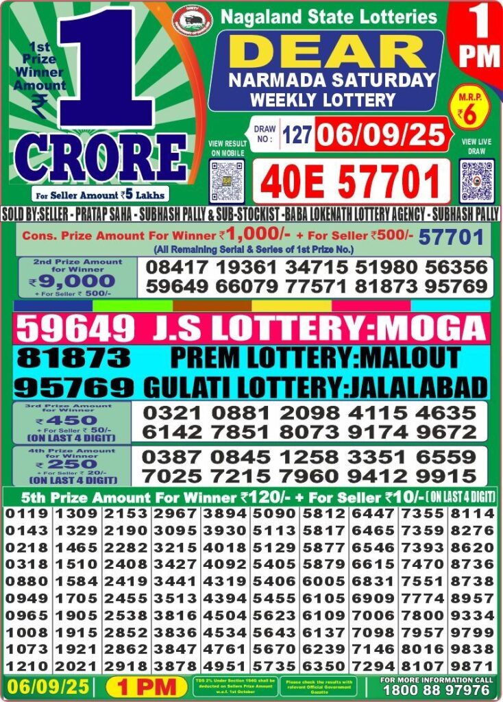 RESULT OF DEAR(06-09-2025 AT 1 PM) M.R.P:-6₹