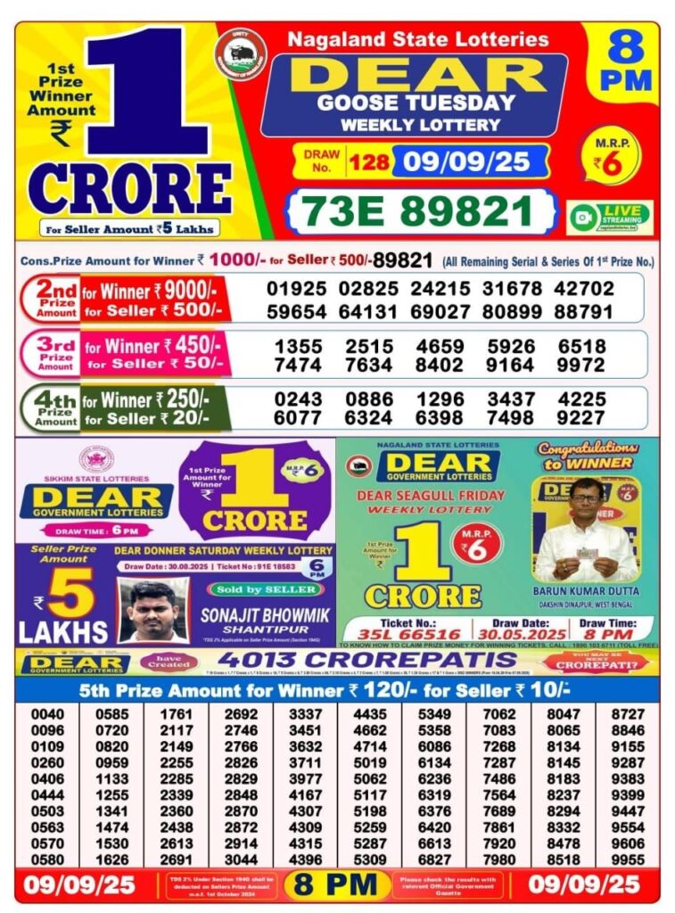 RESULT OF DEAR NAGALAND STATE (10-09-2025 AT 1 PM) M.R.P:-6₹