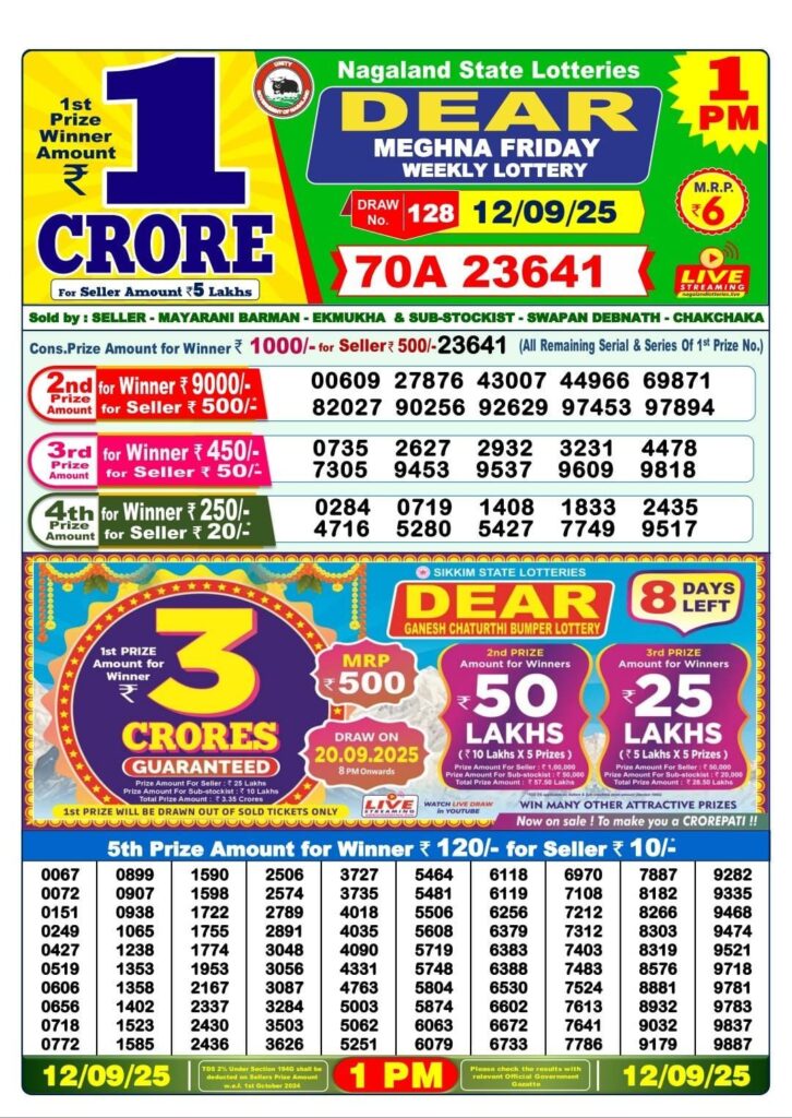 RESULT OF DEAR(12-09-2025 AT 1 PM) M.R.P:-6₹