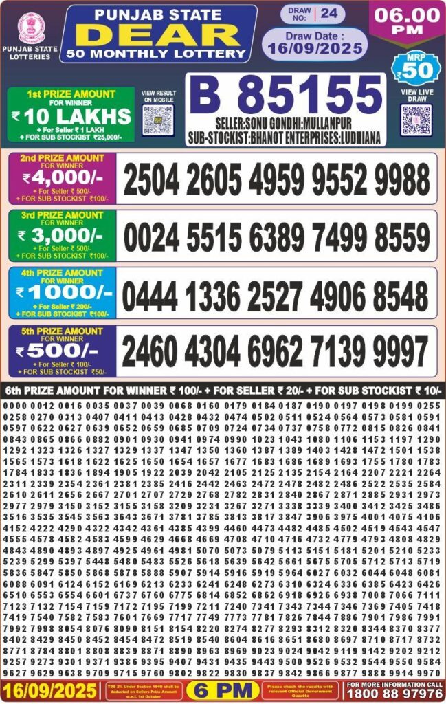 RESULT OF DEAR(16-09-2025 AT 6 PM) M.R.P:-6₹