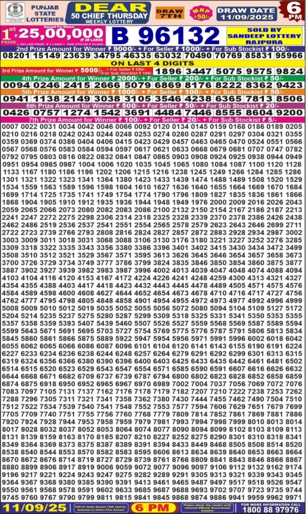 RESULT OF DEAR50(11-09-2025 AT 6 PM) M.R.P:-50₹