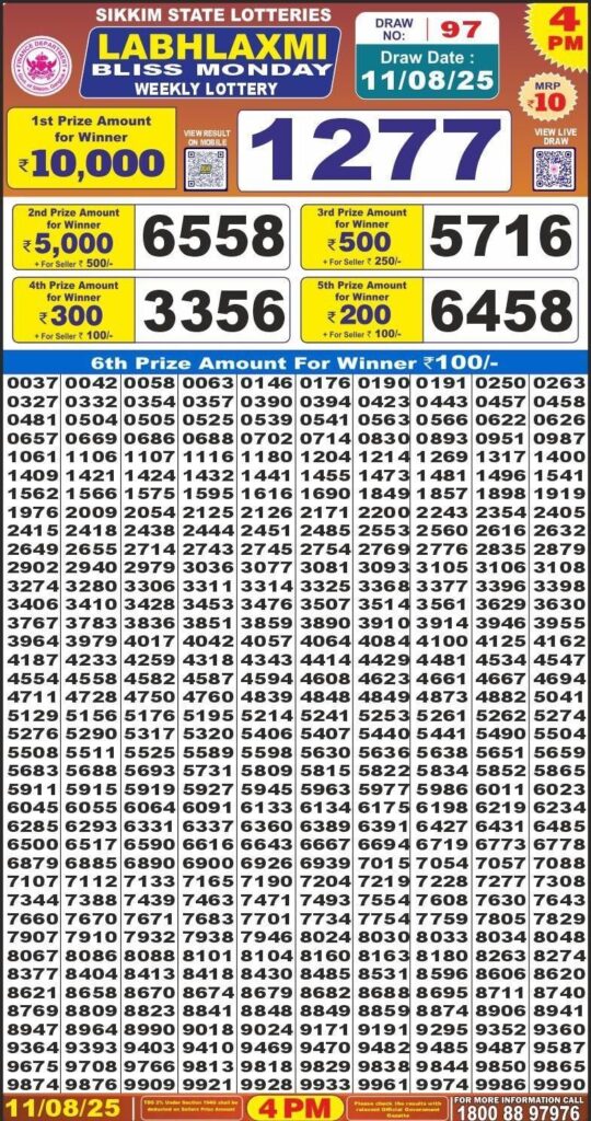 RESULT OF LABHLAXMI (11-08-2025 AT 4PM) M.R.P:-10₹